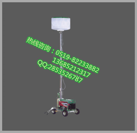 SFW6120B灯具下部气缸采用可调式三脚支架支撑,在不超过 15°的斜坡、碎石路面及面积狭窄的地方能可靠固定;灯具灯盘、气缸和发电机组为整体结构,发电机组底部装有万向轮和铁轨轮,可在坑洼不平的路面及铁轨上运行。